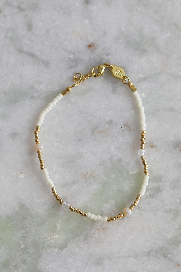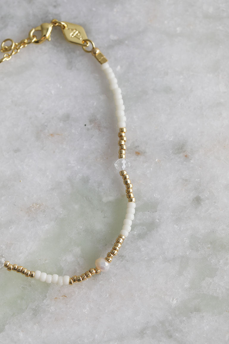 Nydelig armbånd fra danske Anni Lu med offwhite og klare perler.