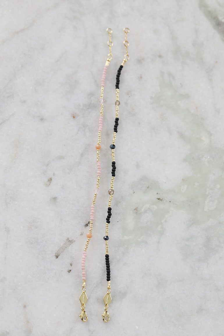 Brass med 18kt forgyldt gull og nydelige detaljer med glassperler. Justerbar lenke fra 15,5 - 18cm