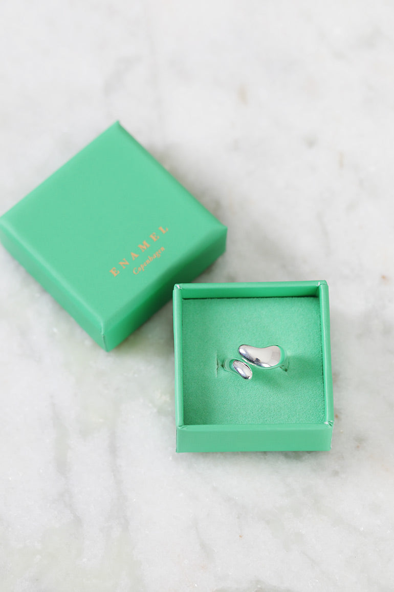 Neli Ring i sterling sølv, er designet med inspirasjon fra naturens myke bevegelser. Den har en elegant, åpen silhuett med voluminøse former som omslutter fingeren. Den blanke overflaten gir et eksklusivt og moderne uttrykk, mens den justerbare størrelsen sikrer at den passer perfekt for deg – uansett anledning.