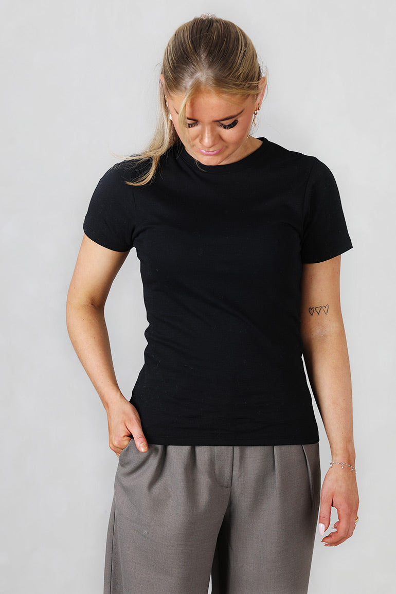 Agnes tee er den perfekte hvite t-shirten i en superforsiktig ribb kvalitet og deilig stretch. Rund hals, korte ermer og smal modell. Sitter så fint og har en helt fantastisk kvalitet. Fine Ting jentenes favoritt base t-shirt!