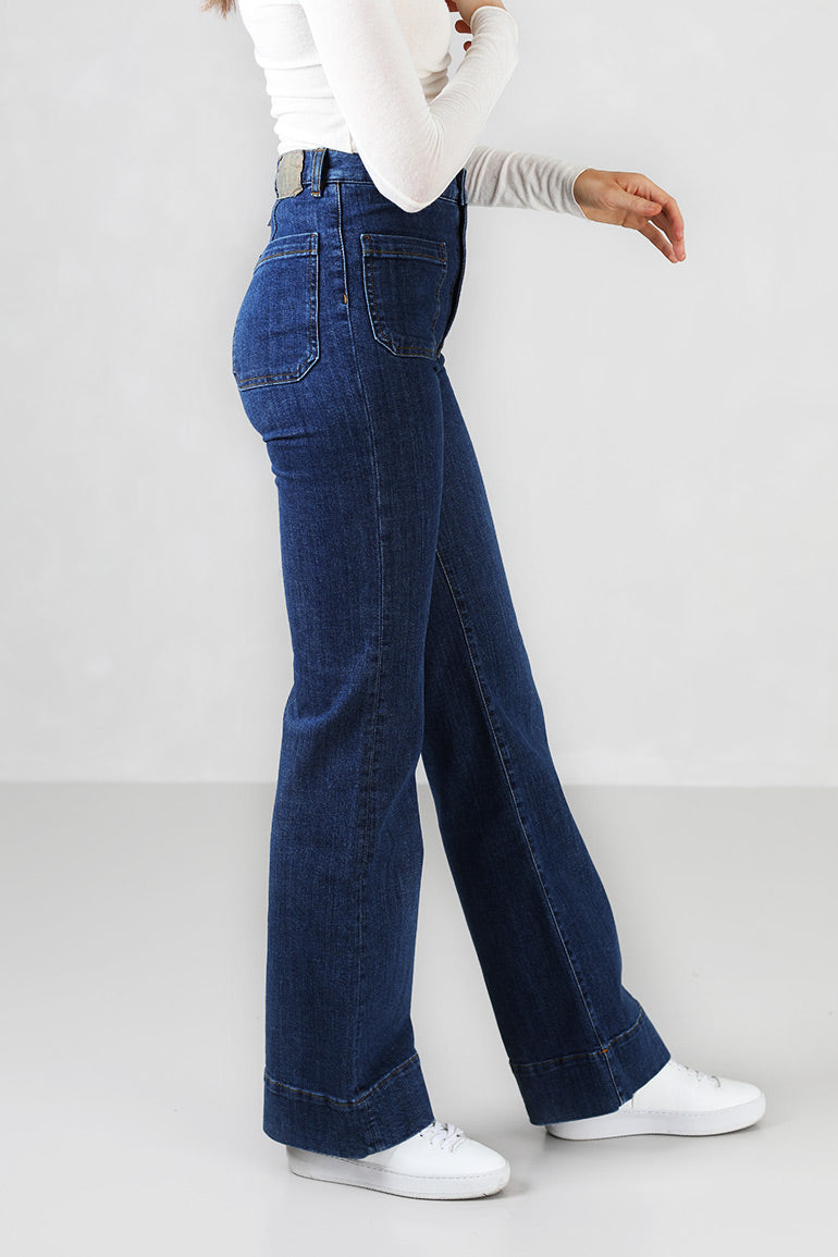 Den superpopulære st. Monica jeansen fra Jeanerica har nå kommet i en lenger lenge. Buksen har et høyt liv, god stretch og firkantede lommer foran og bak. Perfekt sleng med bred kant.