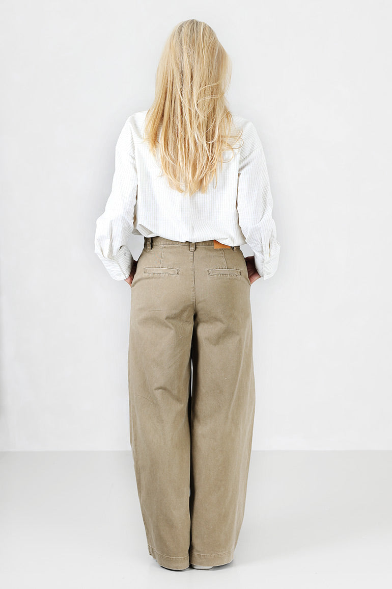 Utrolig kul buksemodell fra våre danske venner i My essential wardrobe. Kul dusarmygrønn farge, skrå lommer i sidene og en veldig fin og behagelig passform.
