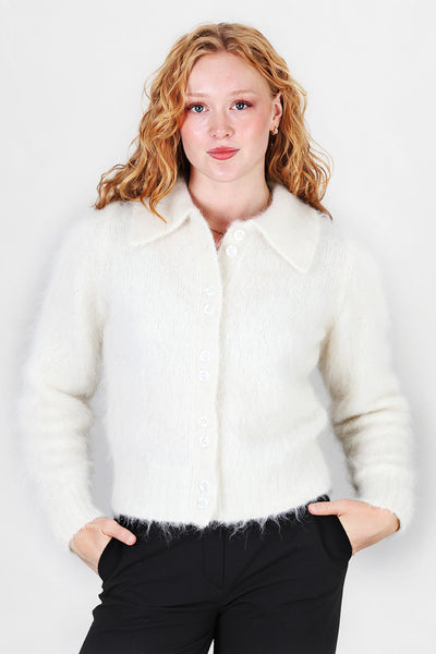 Hairy Knit Polo Cardigan Offwhite
