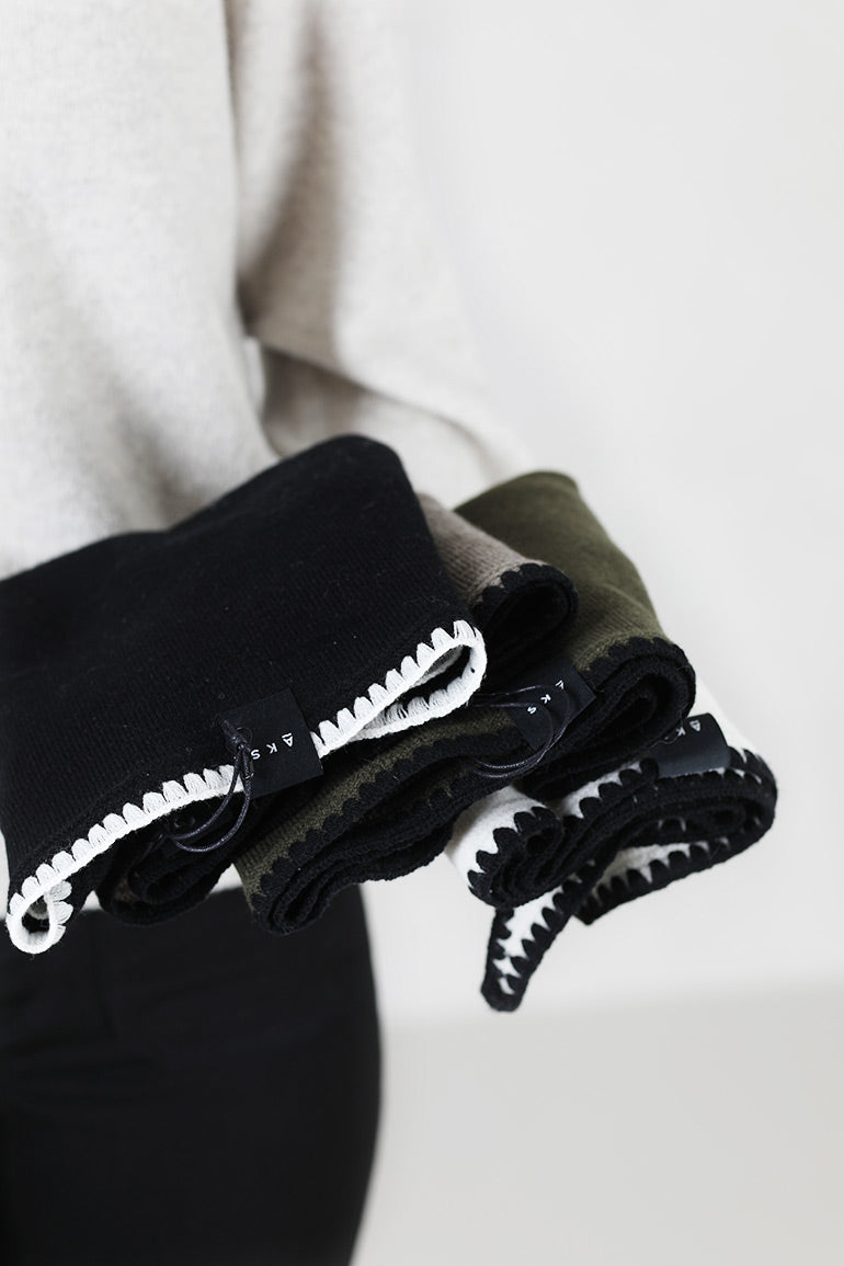 Mina Stitched Merino Scarf Black