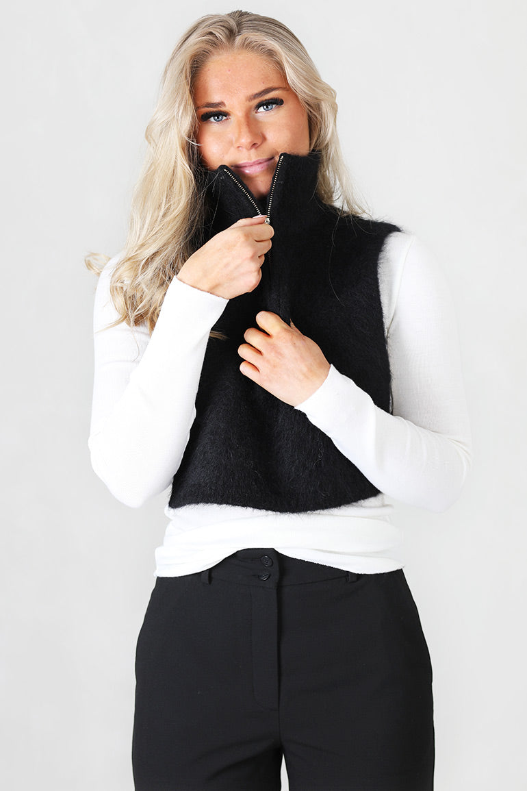 Bestselgeren fra i fjor er tilbake! Deilig hals fra Ella & il i den fantastiske mohairullkvaliteten som vi har blitt så glad i. Fin i stedet for skjerf, men også bare god som en lett genser. Enkel å åpne med glidelås foran. God og varm!