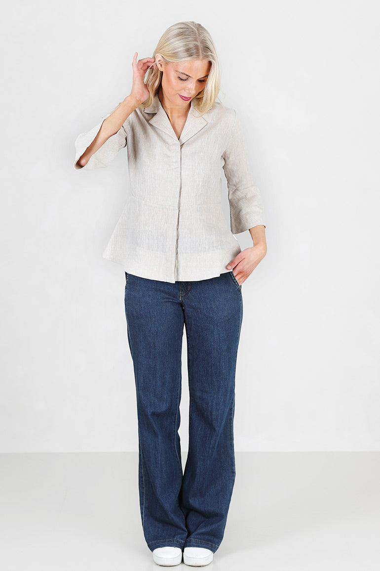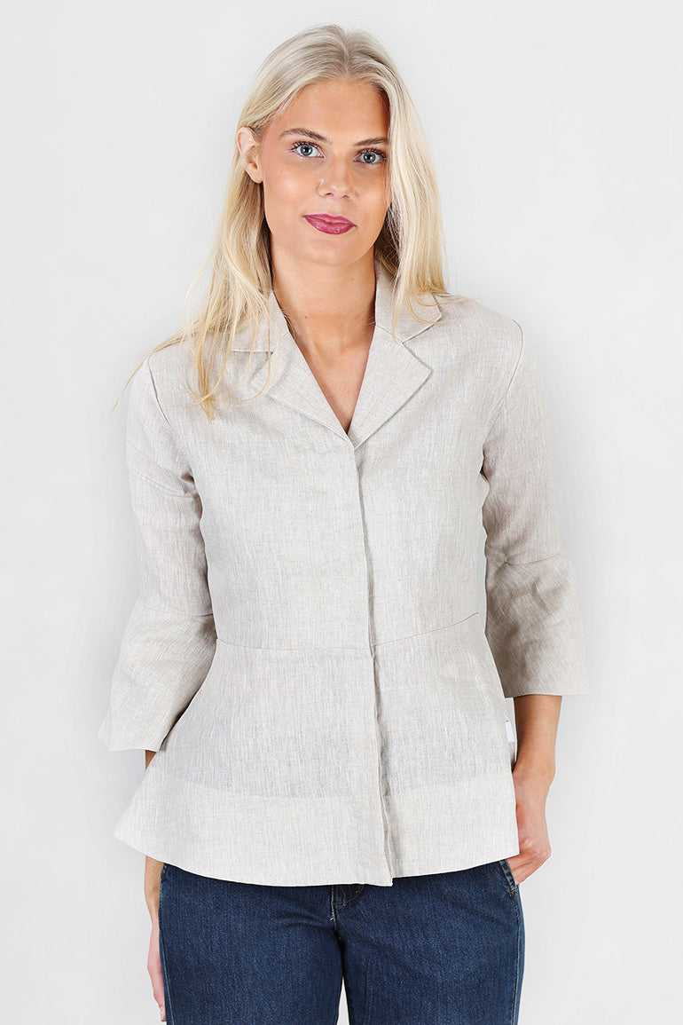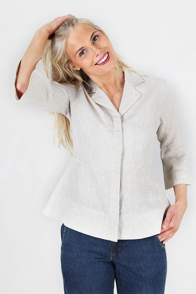 Dette har blitt en stor favoritt fra Ella & il i den tykke fine linkvaliteten som vi har blitt så glad i. Denne skjortemodellen er nesten som en dressjakke og er like fin åpen som lukket. Innsvingt i livet, krage og 3/4 lange ermer som skrår pent ut. Skjult knoppestolpe helt ned. Så feminin og pen. Superfin til en jeans, men også perfekt til både dressbukser og Molly linbuksen i samme serien.