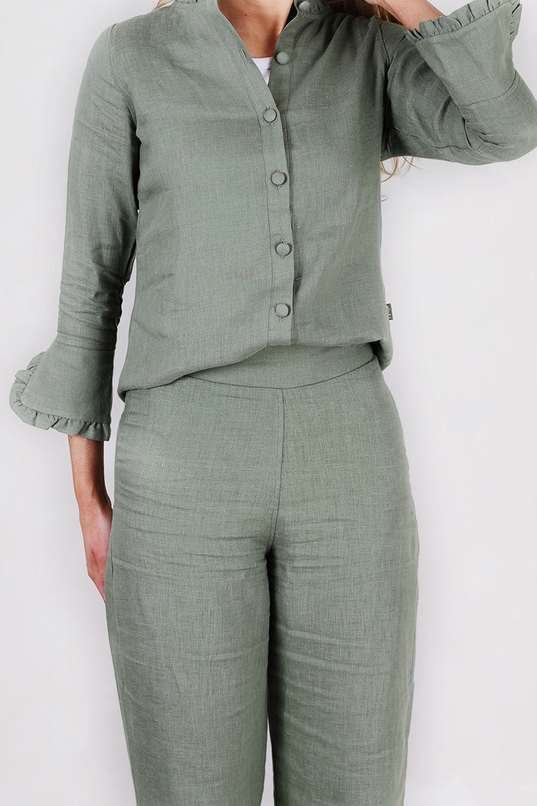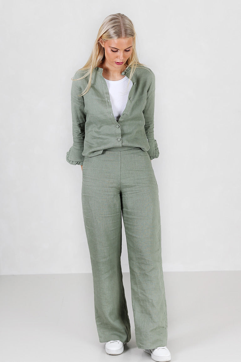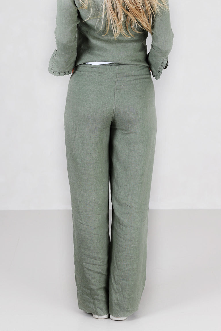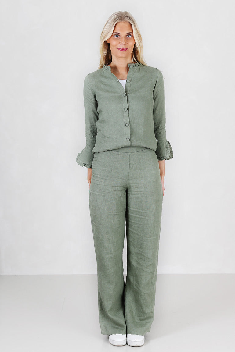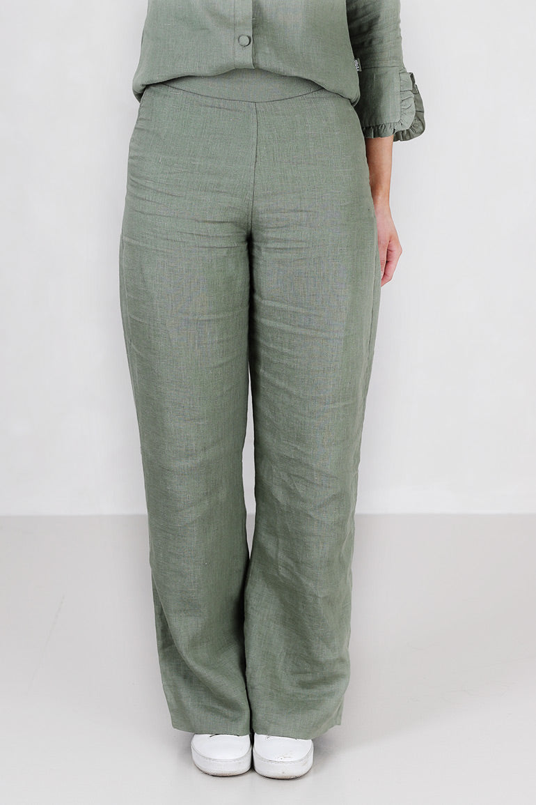 Alltid en bestselger fra Ella & il i en nydelig grønnfarge for våren. Super behagelig bukse i deilig lin fra norske Ella & il. Buksen har en høy midje og rette ben.