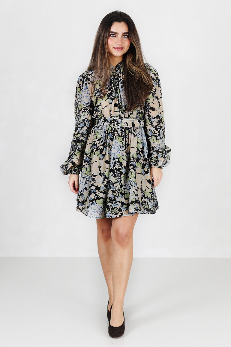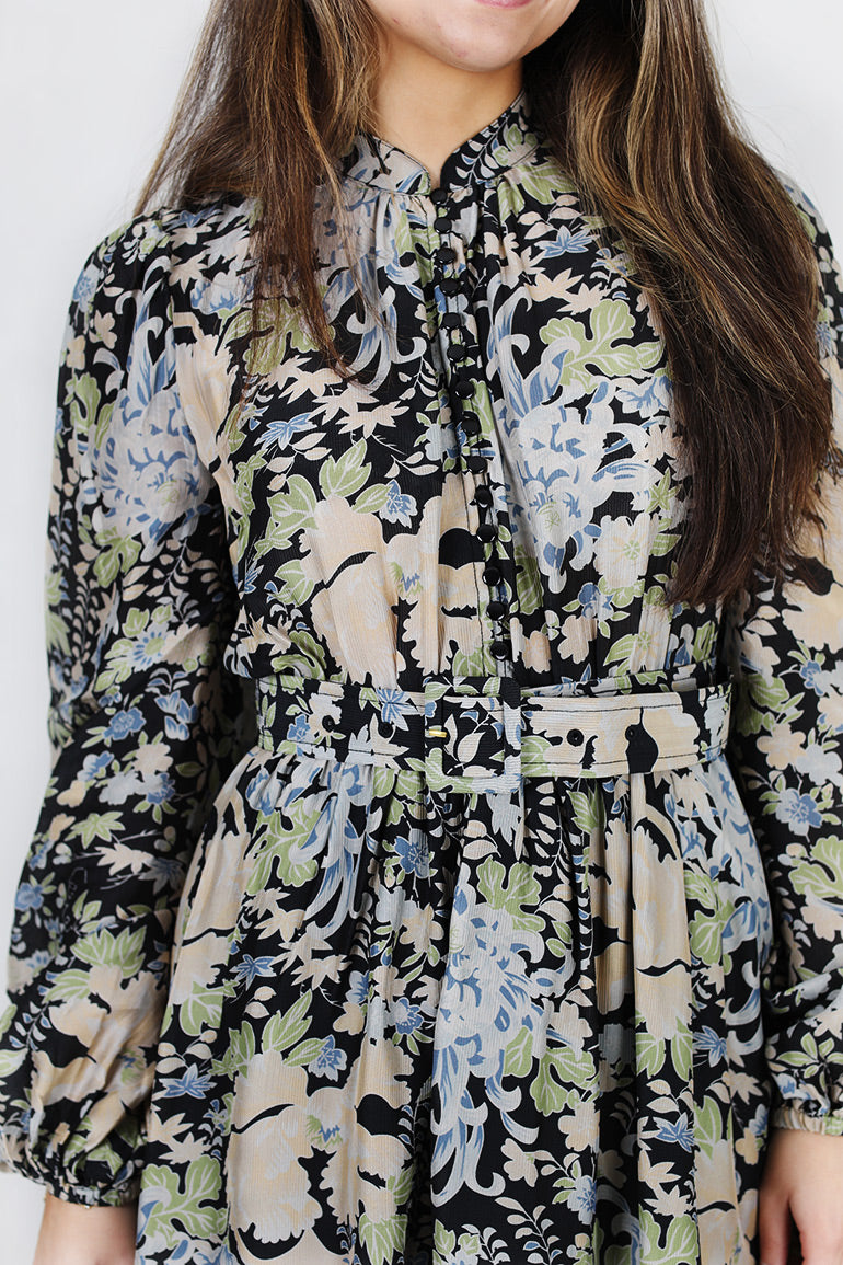 Utrolig vakker kjole fra byTiMo. Belte i livet, lange ermer, liten krage som kan åpnes med knapper.