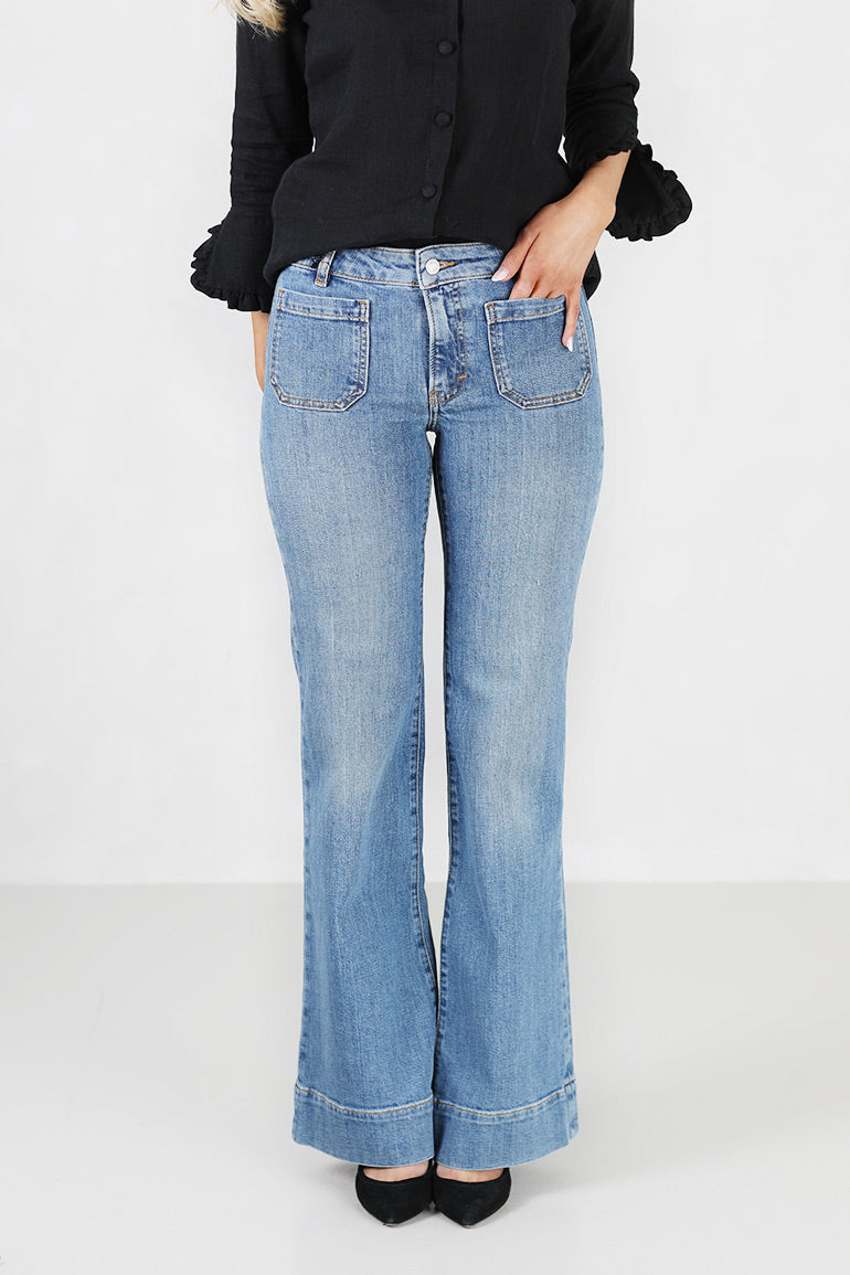En ny variant av den superpopulære St Monica jeansen fra Jeanerica. Denne ny varianten er lavere på livet, men har den samme fine slengen og lommeplasseringen.