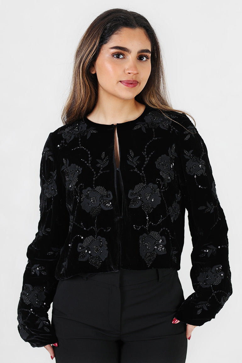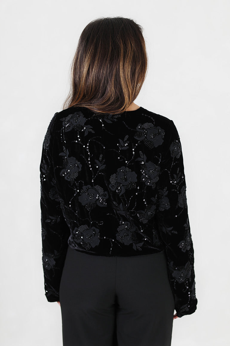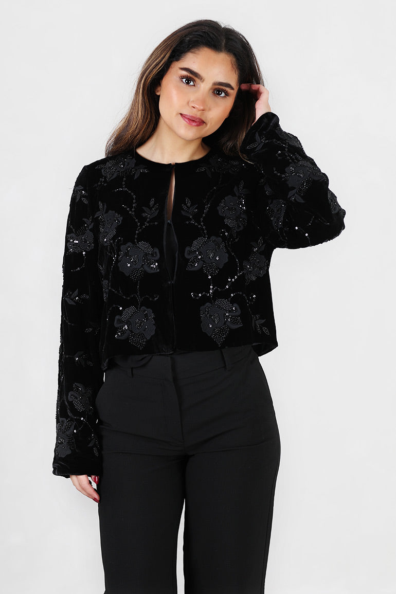 Utrolig vakker paljettjakke i velur fra Pia Tjelta. Den perfekte party jakken som kan styles både opp eller ned. Fin til en middag eller over en pen kjole til nyttår. Men også fin til slitte jeans og pums til våren igjen!