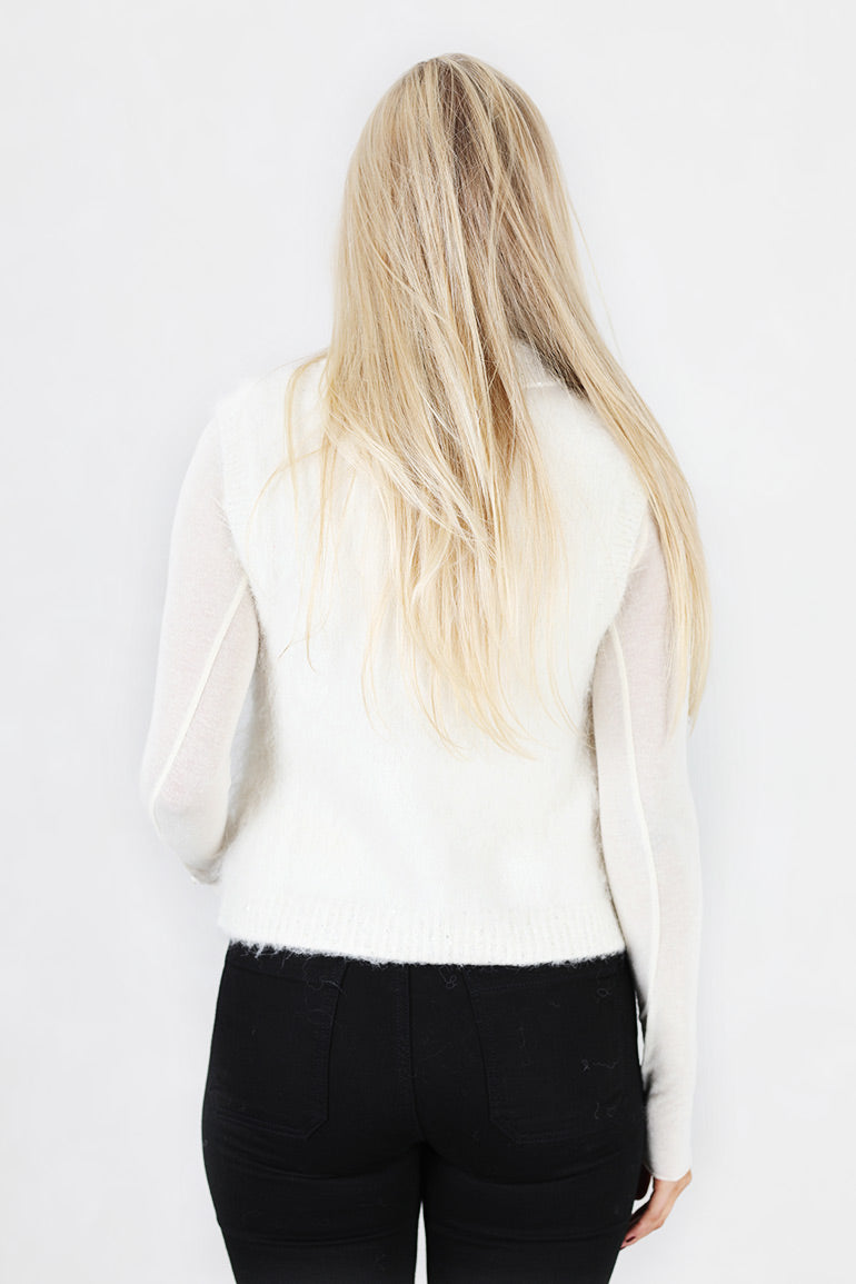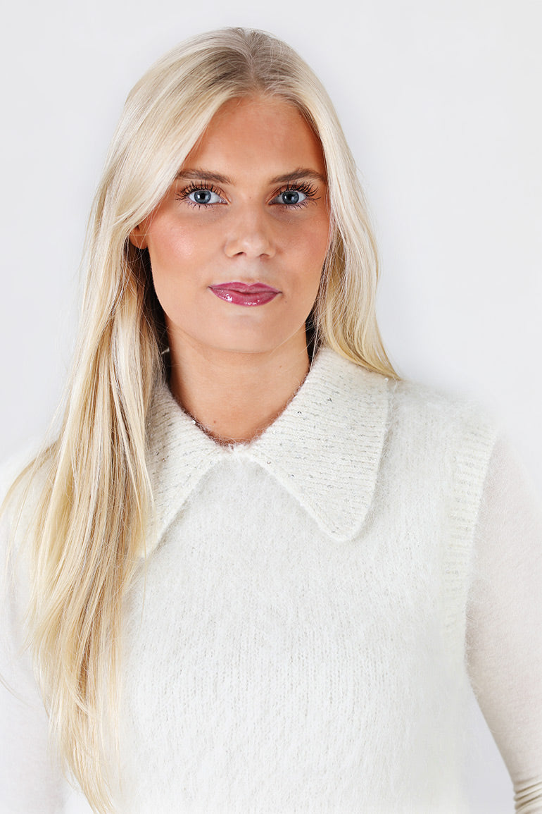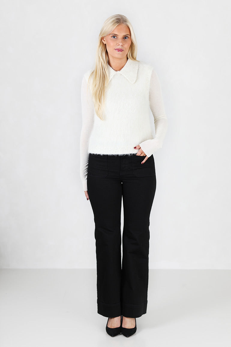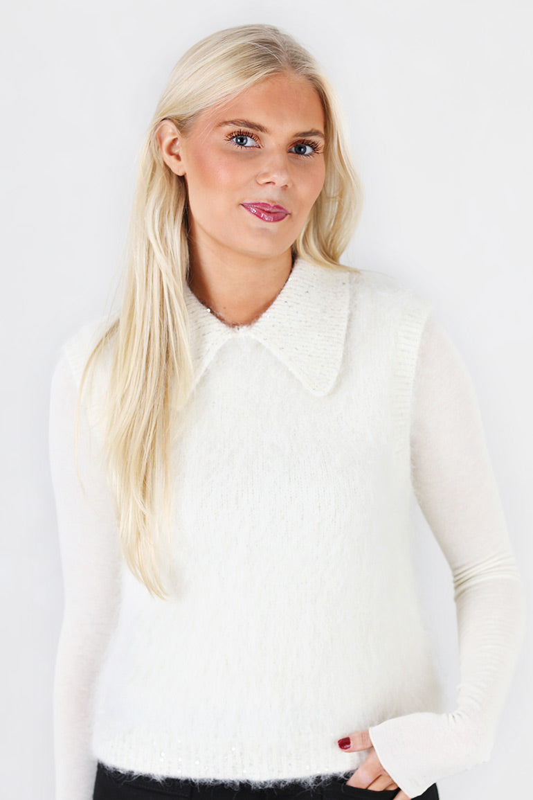 Vakker topp/vest fra byTiMo i sort med glitter i kragen og nederst på kanten. Fin som en topp til pent, eller fin over en longsleeve til hverdags.