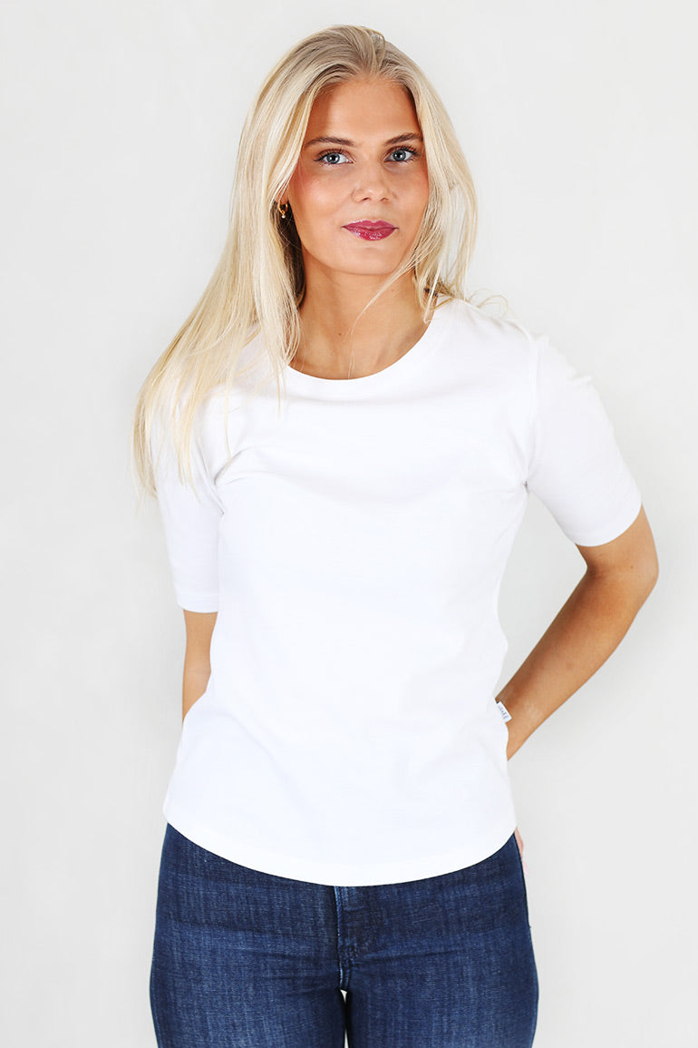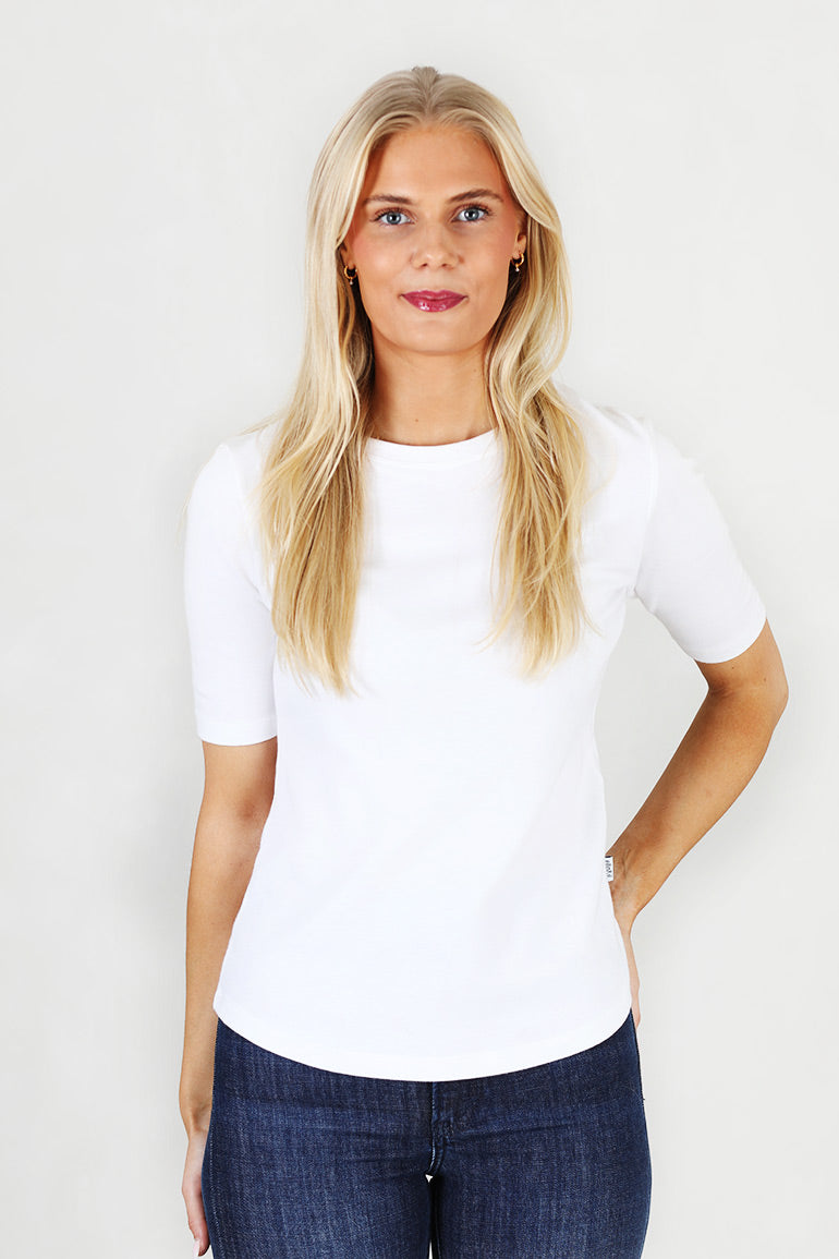 Deilig basic t-skjorte fra norske Ella&Il! T-skjorten har rund hals og en litt lenger kort arm. God og myk kvalitet - dette er hverdagsfavoritten vår!