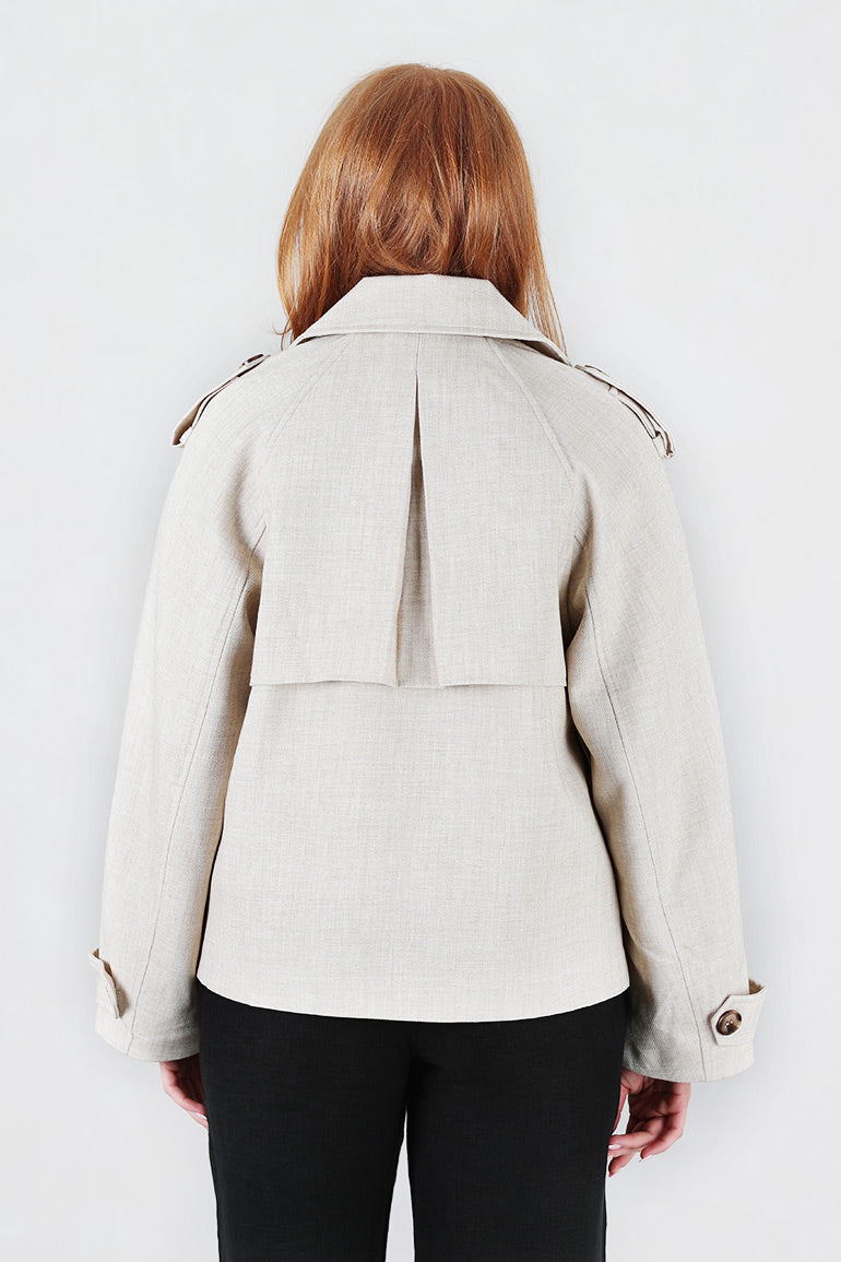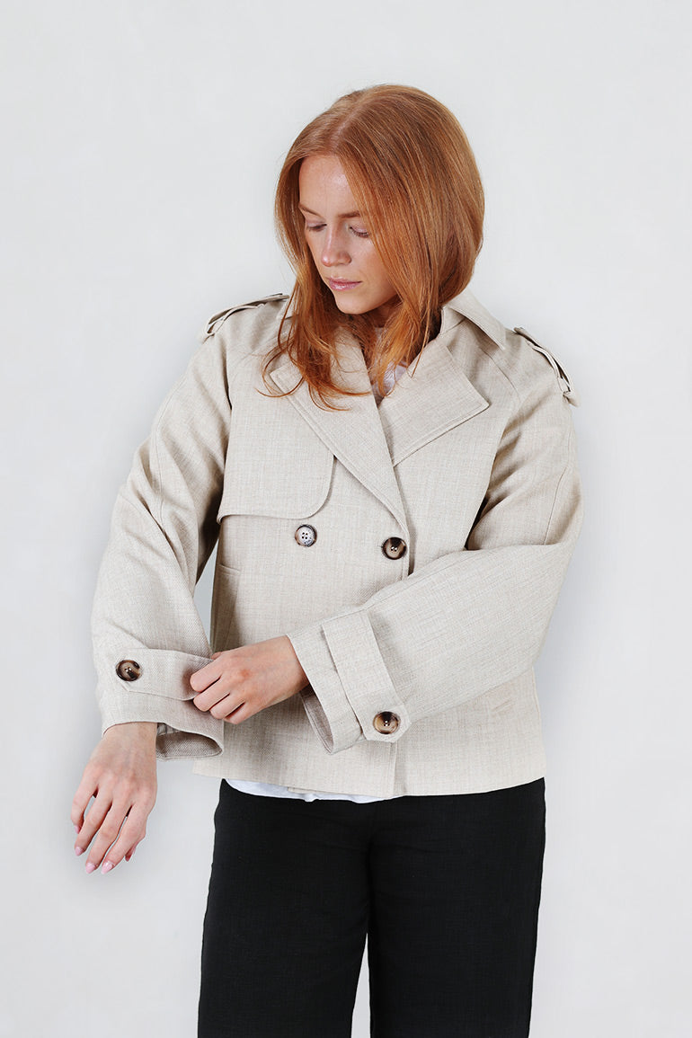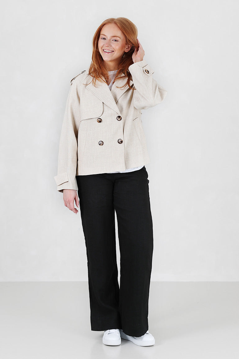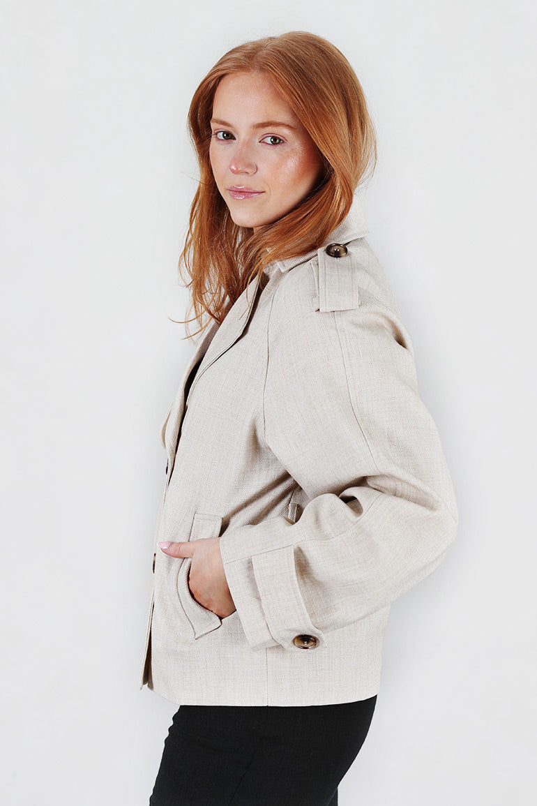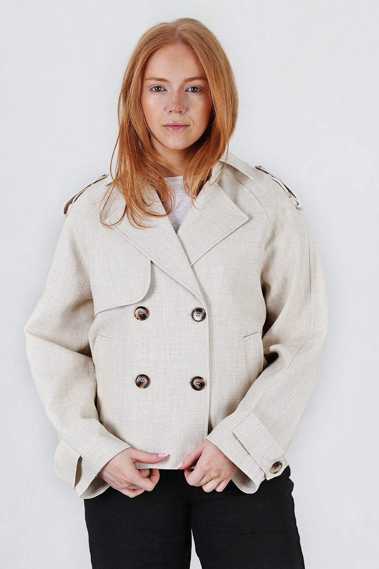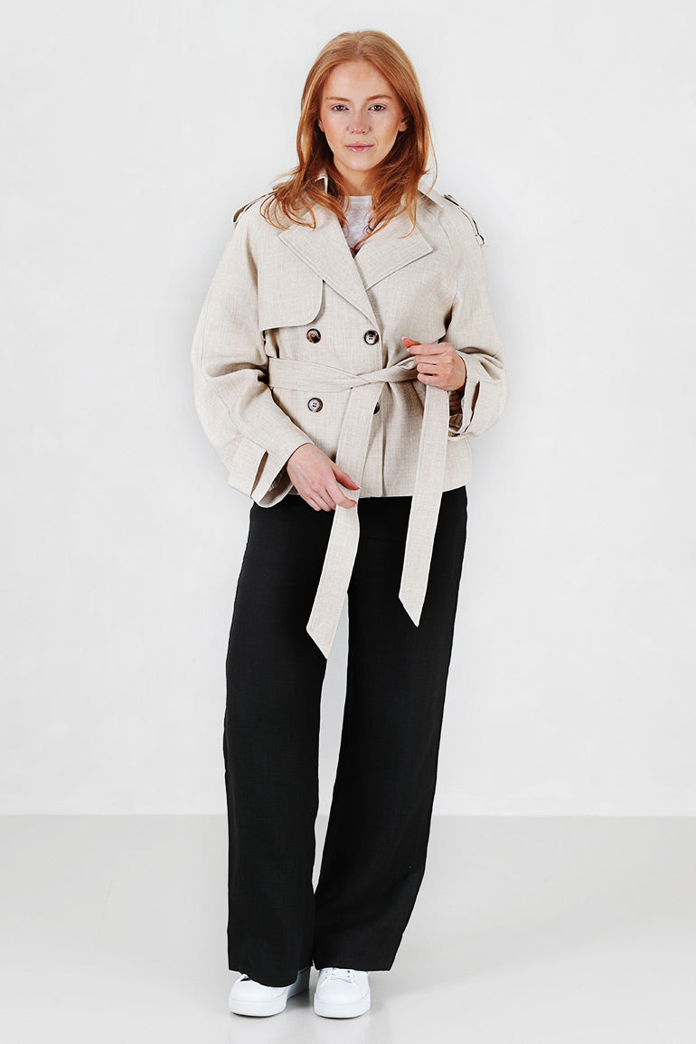 Vårens fineste vårjakke fra franske Grace & Mila. Avtagbart belte i livet, lommer i sidene, krage og hemper på skuldre. Dobbeltspent.