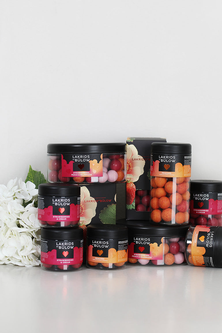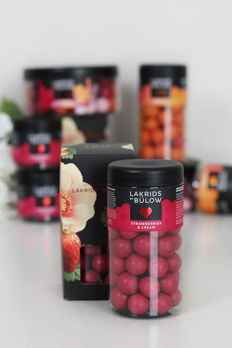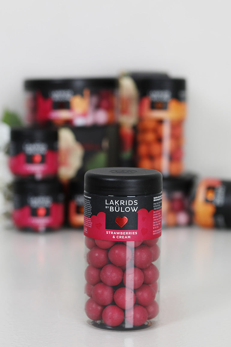 Oppdag en søt synergi mellom smaksrike røde jordbær, hvit myk fløte og søt lakris. Hvit sjokolade binder det hele sammen og gir deg en utrolig smaksopplevelse av ekte dansk kjærlighet