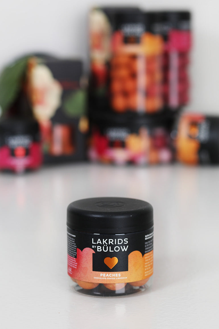 Fersken er også kjent som dronningen blant fruktene, og vi forstår hvorfor. PEACHES forener søte noter fra saftige fersken med en kjerne av søt lakris, det hele dekket av myk hvit sjokolade, med salmiakk og et hint av pasjonsfrukt. Et knasende sukkerskall sørger for sprøhet.