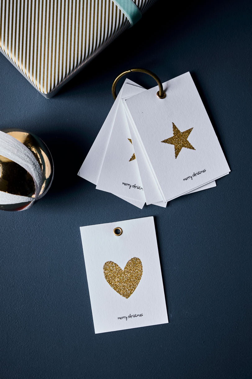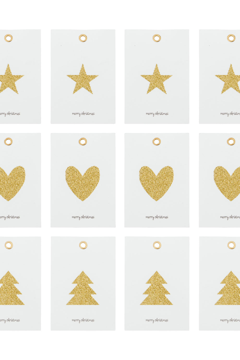 12 fantastisk fine gavekort til å henge på årets julegaver fra House doctor. Ulike gull print på hvit bakgrunn.