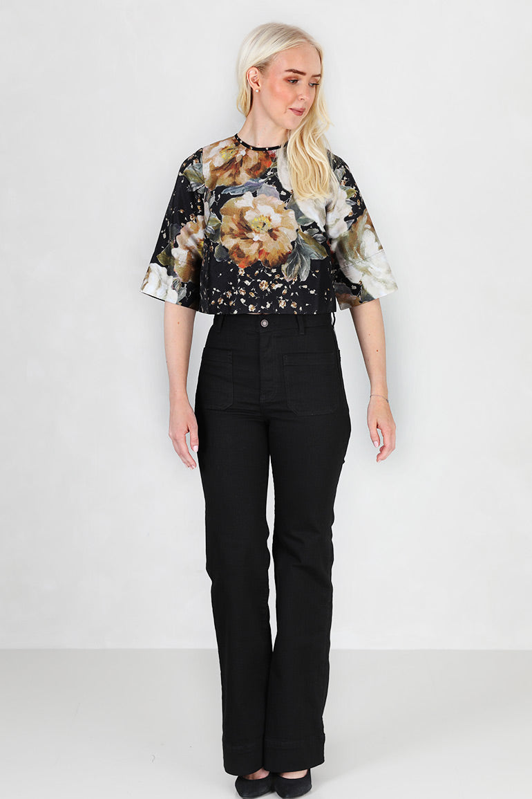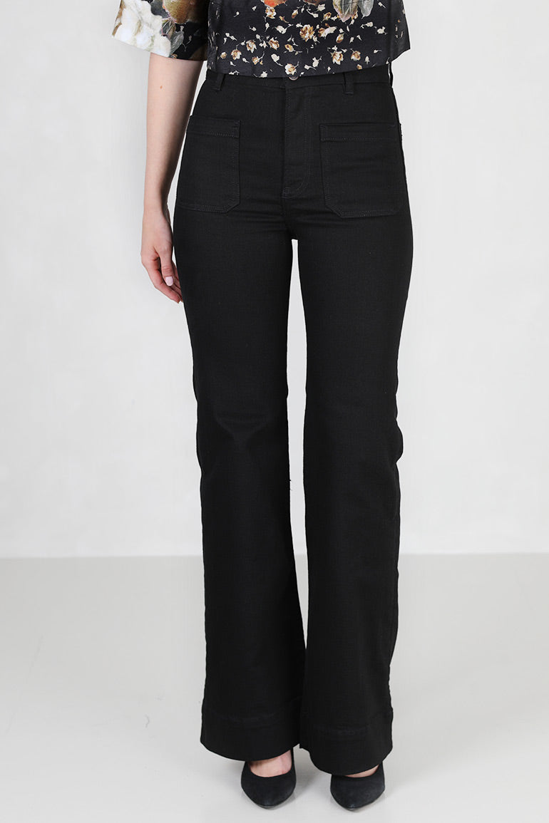 Endelig har den populære St Monica jeansen fra våre svenske venner i Jeanerica kommet i helt sort. Høyt liv, litt stretch og firkantede lommer foran og bak. Perfekt sleng med bred kant. Buksen får et penere uttrykk siden sømmene er ton-i-ton.