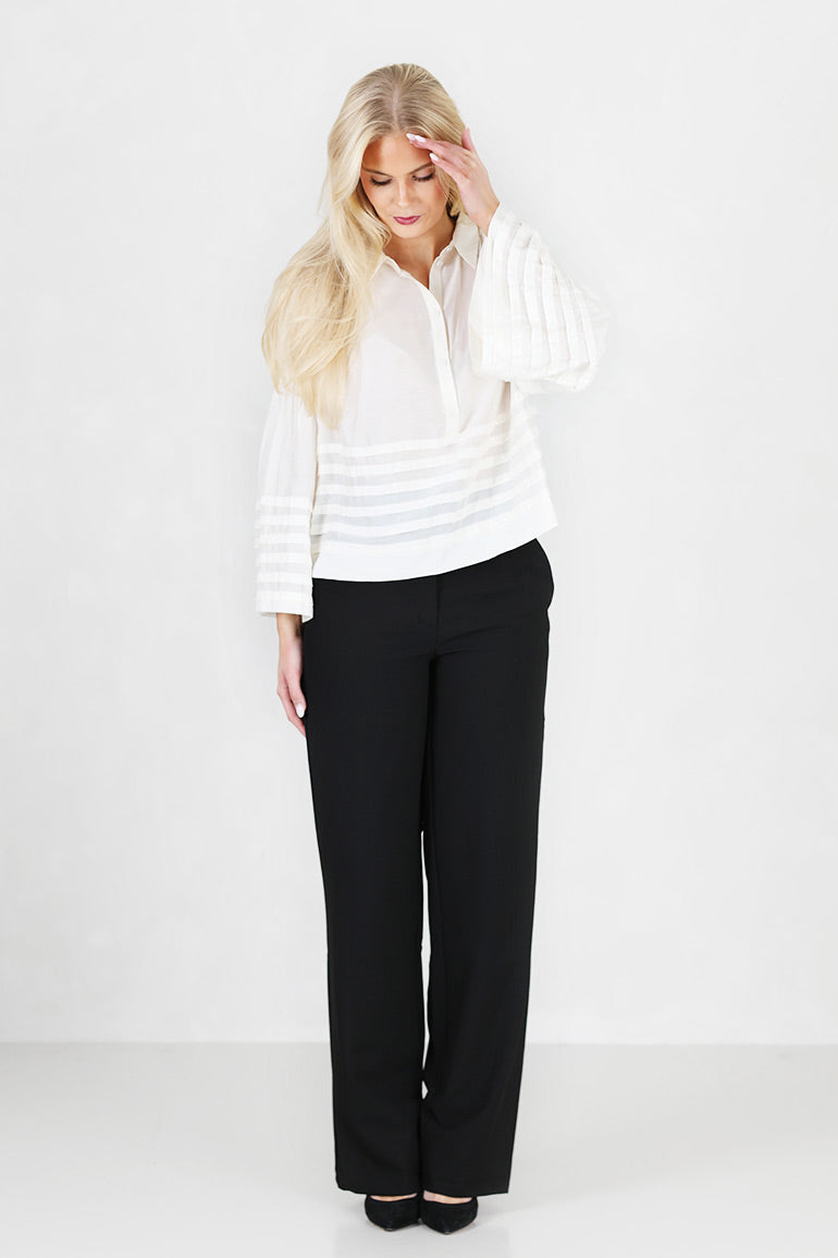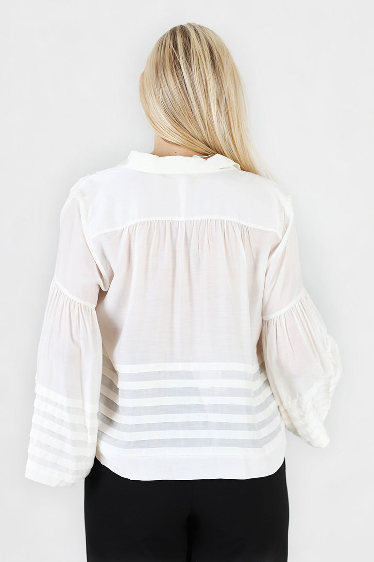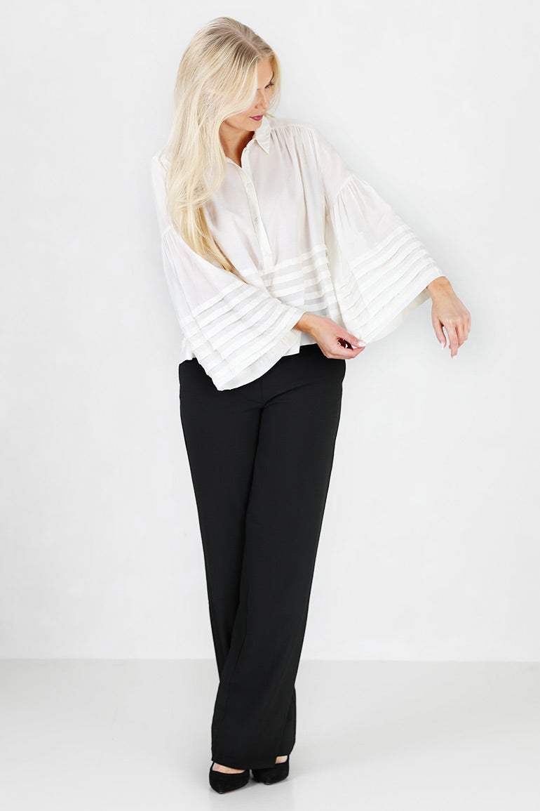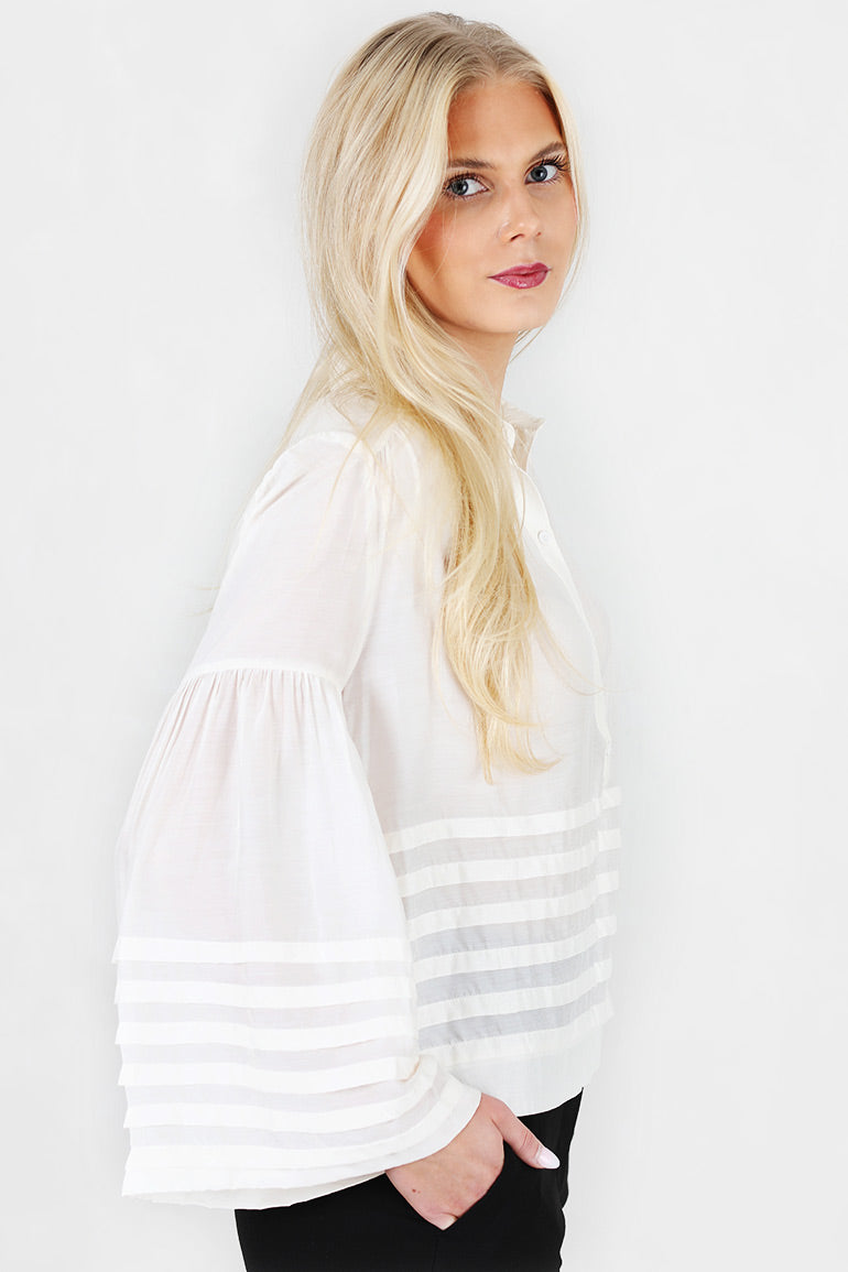 Vakker bluse fra danske Munthe i offwhite. Vide ermer, krage og knappestolpe ned over brystet. A-shape som faller vakkert.