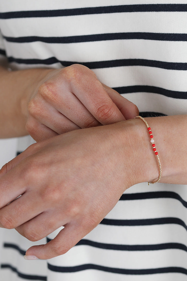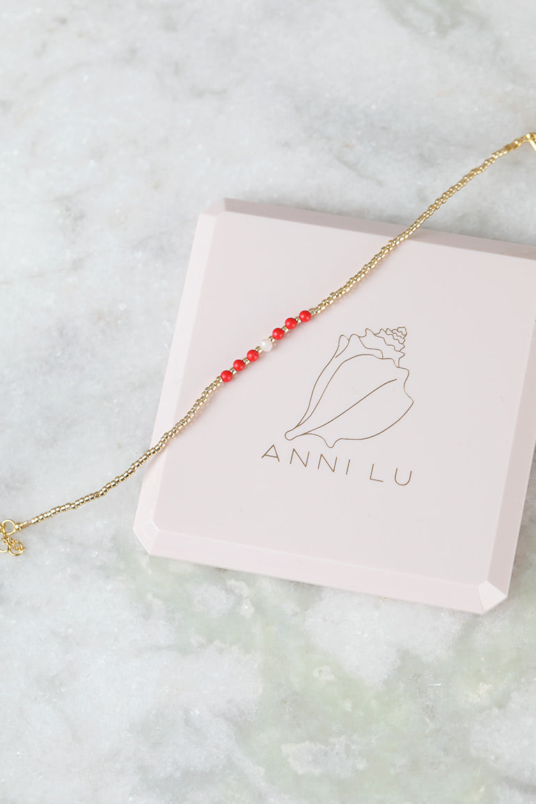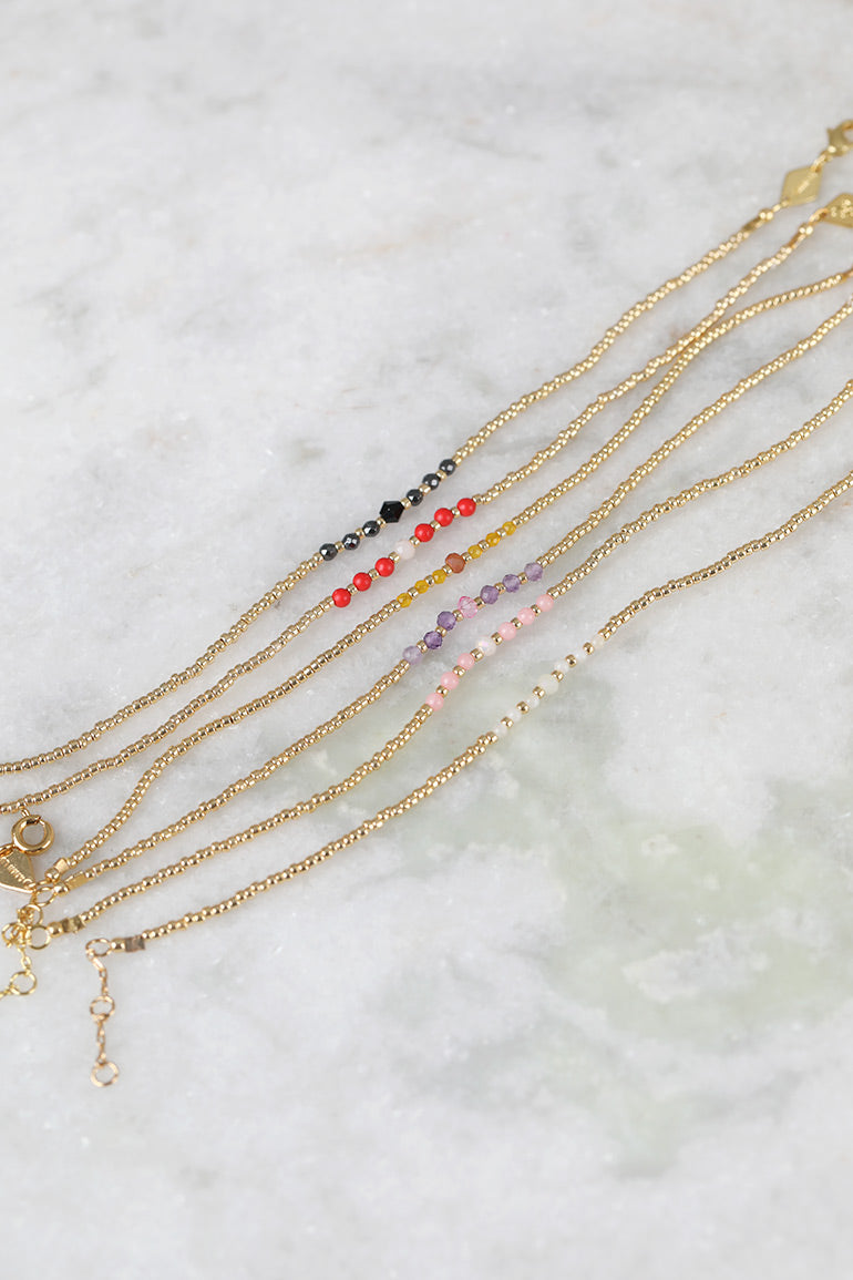 Vi elsker armbåndene til vår store smykkefavoritt Anni Lu! Superfine alene, men fantastiske sammen i ulike kombinasjoner. Håndlager med gullkuler og halvedelstener.