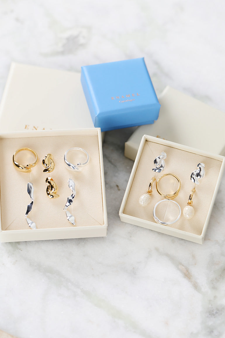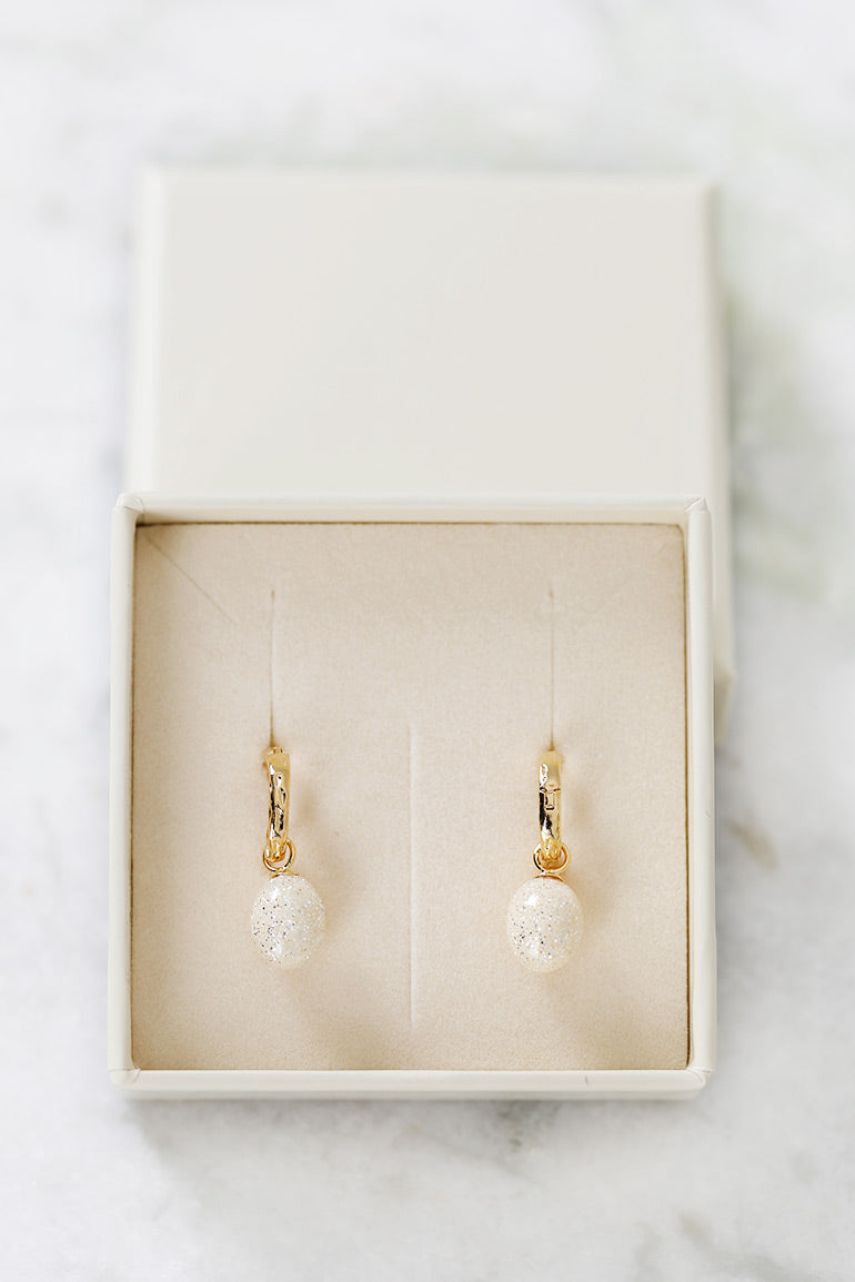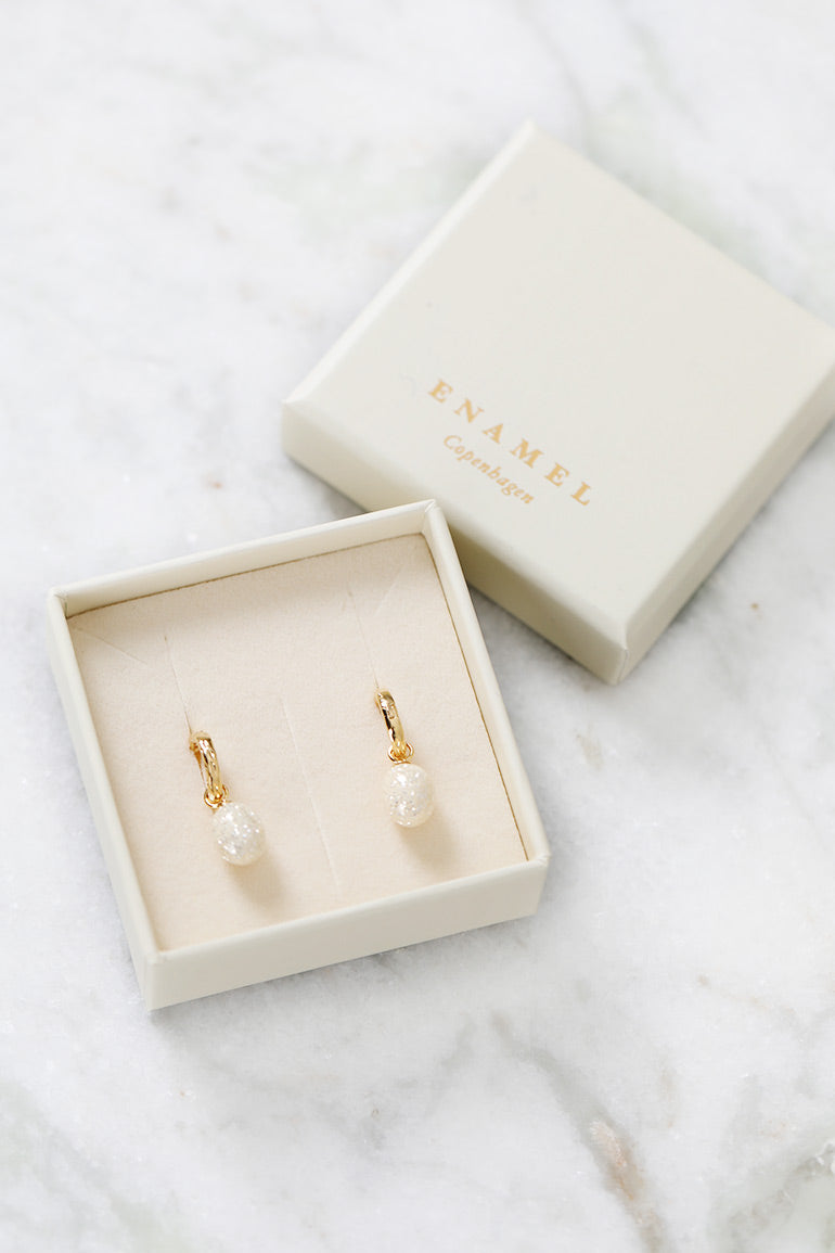 Skjønne øredobber fra danske Enamel Copenhagen. Hoop med glitrende emalje er superfin og festlig, med sin glitrende glans og dansende glimmerbiter.