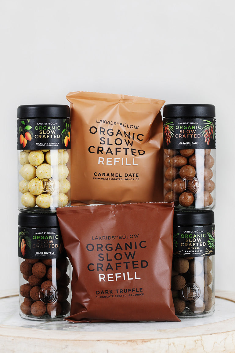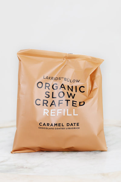 Bülow sier dette om nettopp denne smaken: Nyt økologiske søtsaker fra naturen i en overraskende delikat kombinasjon. I CARAMEL DATE møter myk dulce-sjokolade og sprø Maldon havsaltflak en av naturens søteste godsaker, Deglet Nour dadler, noe som gir en utrolig kremet og luksuriøs opplevelse. Når du kommer til kjernen, møter du den fyldige, karamellaktige SLOW CRAFTED-lakrisen, som gir en langvarig opplevelse og får deg til å lengte etter mer.