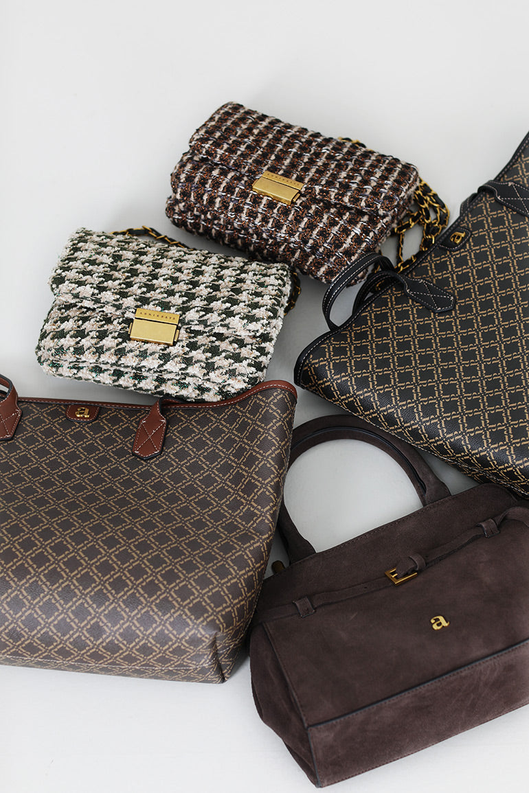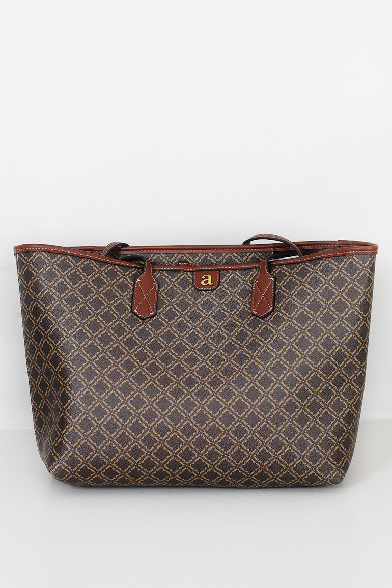 Den perfekte hverdagsvesken fra Arnie Says. Nydelig fargekombinasjon med brunt og mørkebrunt mønster og detaljer. Fin til skolen, til kontoret eller til reise.