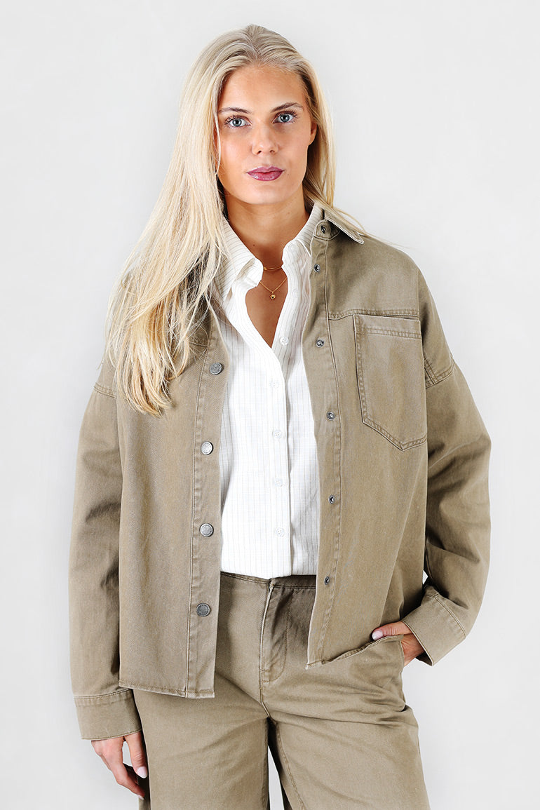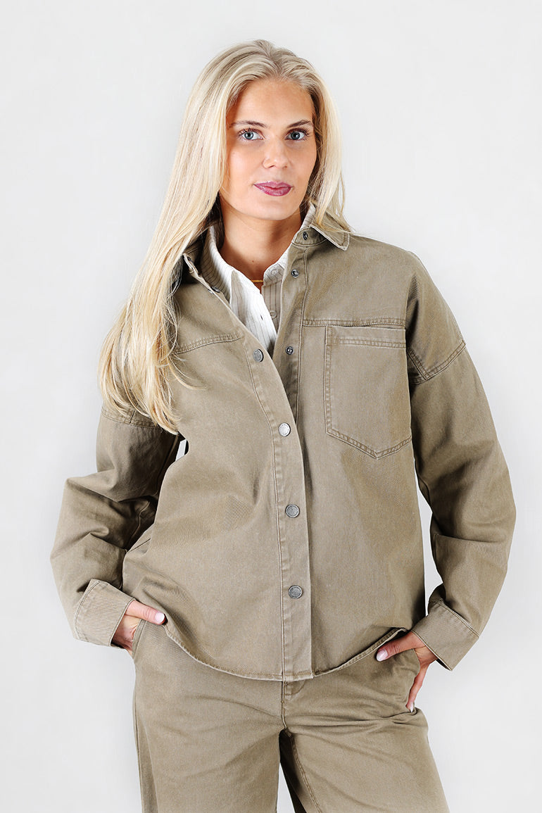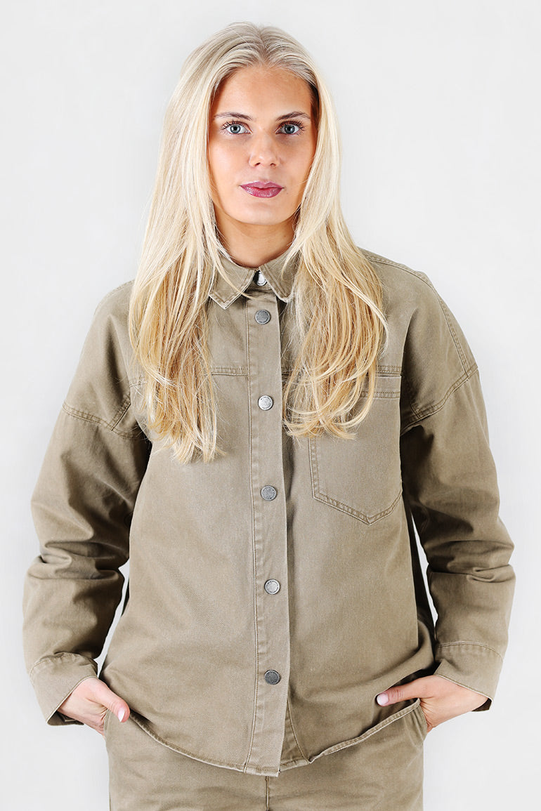 Utrolig kul skjortejakke fra våre danske venner i My essential wardrobe. Kul dusarmygrønn farge, oversized modell med lange ermer og krage.
