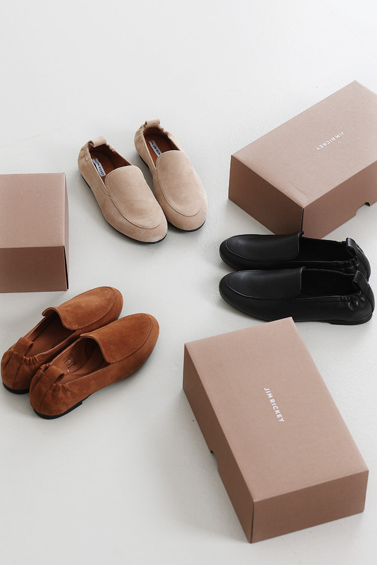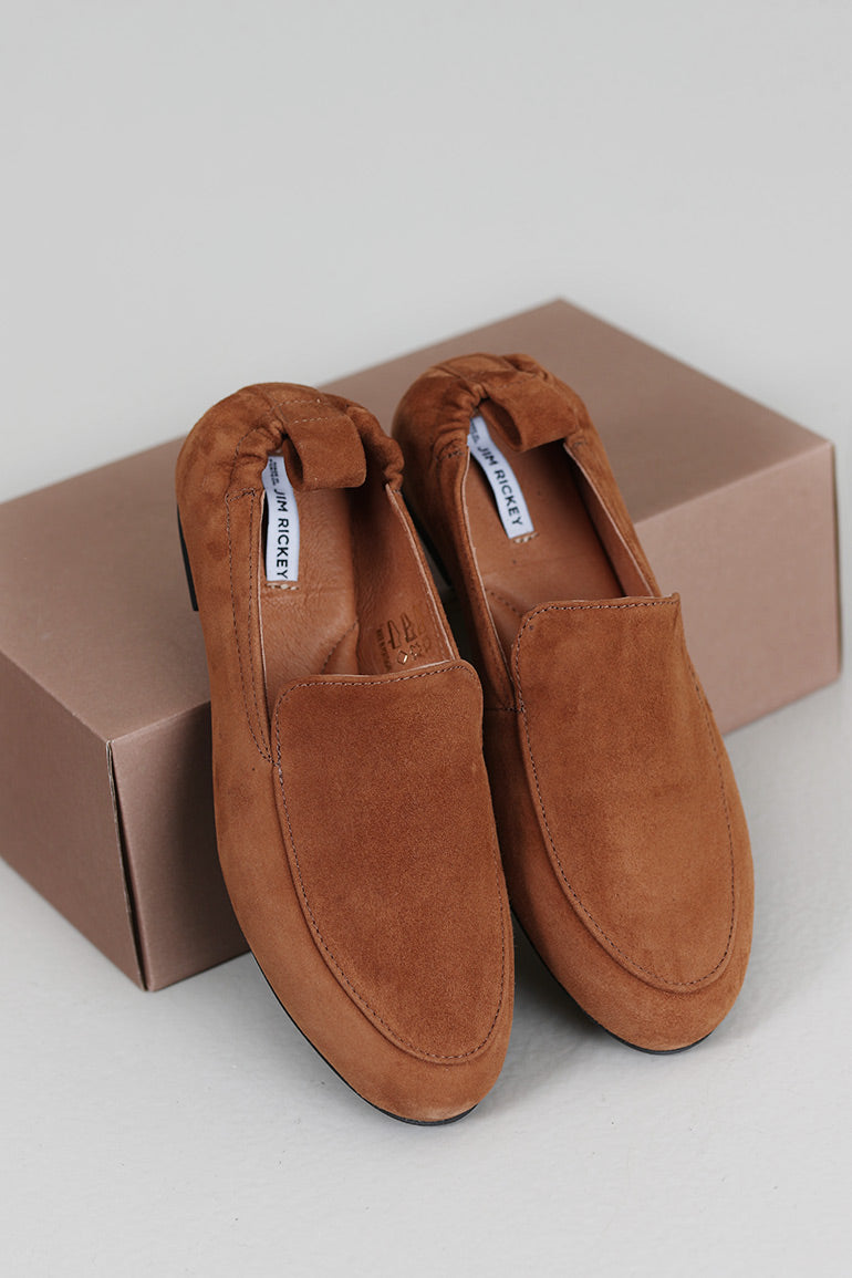 Veldig skjønne, lette og utrolig myke loafers fra svenske Jim Rickey i ny cognac farge for våren! Disse sitter utrolig fint på foten, og føles som en ballerina-loafers. Cognac semsket skinn med sort såle.